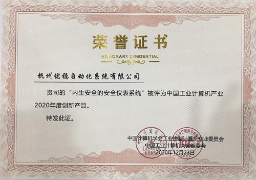 大會還舉行了中國工業(yè)計算機年度頒獎典禮,揭曉了中國工業(yè)計算機2020年度“先鋒企業(yè)”、“創(chuàng)新產(chǎn)品”、“優(yōu)秀解決方案”和“優(yōu)秀論文”等獎項。優(yōu)穩(wěn)公司“內(nèi)生安全的安全儀表系統(tǒng)”榮獲中國工業(yè)計算機產(chǎn)業(yè)2020年度創(chuàng)新產(chǎn)品。