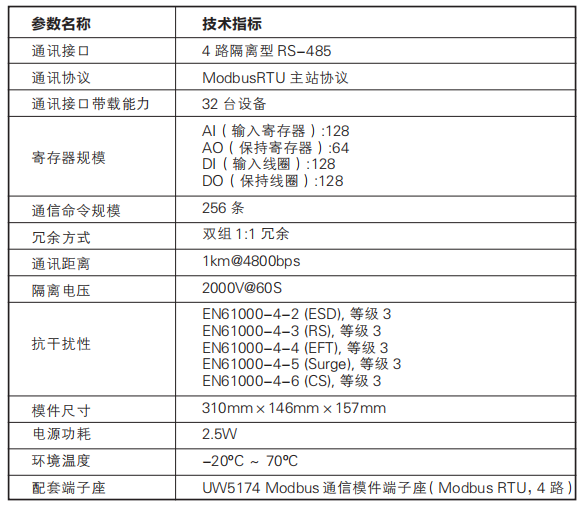 - 4路隔離型RS-485通訊接口,模件與外部設(shè)備完全電氣隔離;
