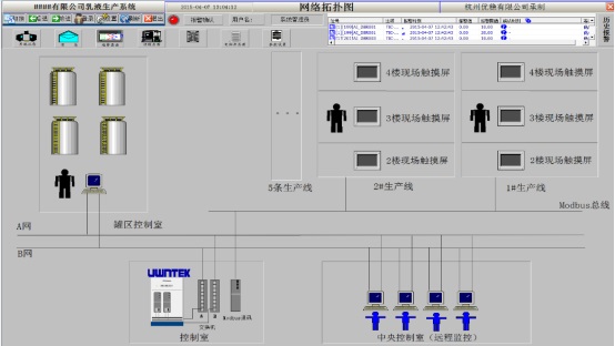 2.對于現(xiàn)場的分工配合,優(yōu)穩(wěn)DCS利用其靈活的人機交互功能及強大的擴展通訊功能,與現(xiàn)場幾十臺觸摸屏通過Modbus通訊,實現(xiàn)了現(xiàn)場端負責具體的操作,中控室負責全局的把控和分工段操作的監(jiān)控,通過優(yōu)穩(wěn)DCS強大功能使現(xiàn)場權(quán)限明確,分工仔細,減少了人為失誤,確保了平穩(wěn)高效的生產(chǎn)。