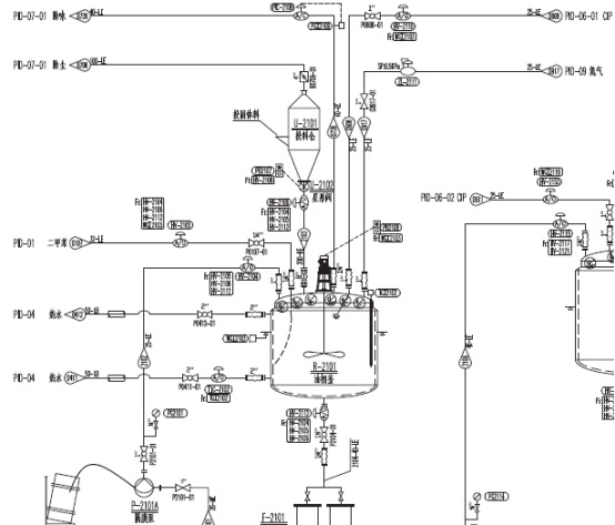 主要設(shè)備在UW500 DCS平臺上有與之對應(yīng)的控制模型。例如R-2101油相釜設(shè)備單元圖紙如下: