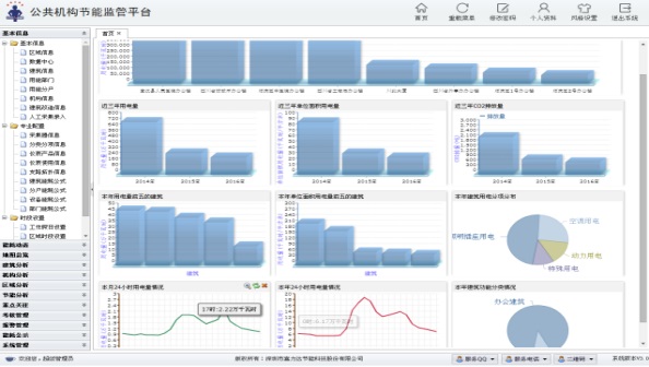 本次建設(shè)的公共機(jī)構(gòu)節(jié)能監(jiān)管平臺(tái)的監(jiān)控界面主要包括:能耗總覽、地圖總覽、基本信息、能耗動(dòng)態(tài)、建筑能耗分析、公共機(jī)構(gòu)能耗分析、行政區(qū)域能耗分析、能耗考核、能耗接收和上傳、系統(tǒng)管理。通過(guò)這些功能模塊,可以實(shí)現(xiàn)能耗數(shù)據(jù)的采集、監(jiān)測(cè)、統(tǒng)計(jì)、分析、診斷,為行政中心公共建筑能源管理和節(jié)能改造提供有力的數(shù)據(jù)支持和科學(xué)依據(jù)。