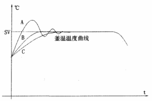 (2)冷水加的太少,夾套溫度偏高,抑制不住釜內(nèi)溫度上升的趨勢(shì),造成“過(guò)沖”現(xiàn)象,導(dǎo)致保溫段釜內(nèi)溫度波動(dòng)太大,需要長(zhǎng)時(shí)間的控制調(diào)整,如圖7的曲線A所示;