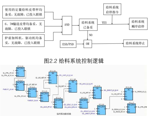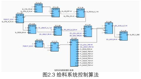 給料系統(tǒng)根據(jù)奧斯麥特爐工藝在實(shí)際生產(chǎn)中的需求,實(shí)現(xiàn)順啟、順??刂?,當(dāng)奧爐發(fā)生工藝停車(PSD)以及緊急停車(ESD)時(shí),整個(gè)給料系統(tǒng)停止輸送爐料。整個(gè)給料聯(lián)鎖控制邏輯如圖2.2所示,圖2.3為控制算法。